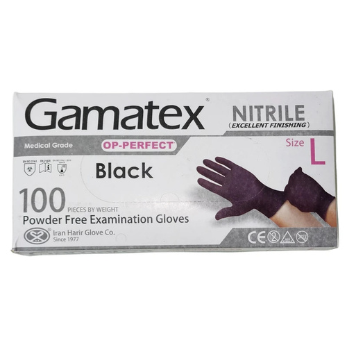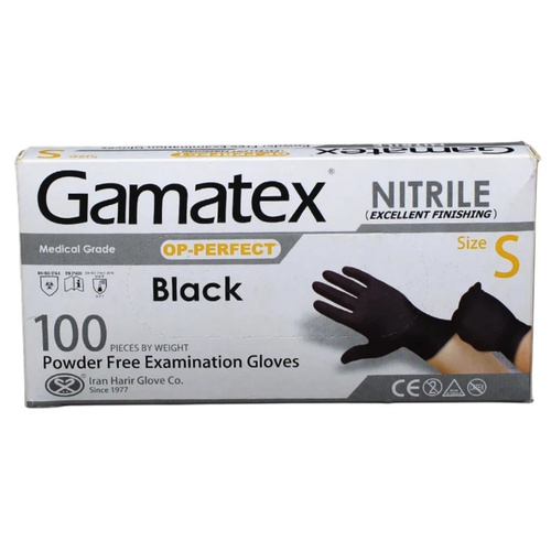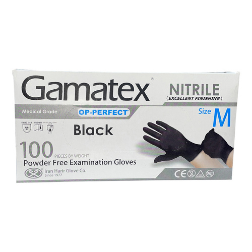 دستکش نیتریل حریر مدل گاماتکس مشکی بسته 100 عددی
